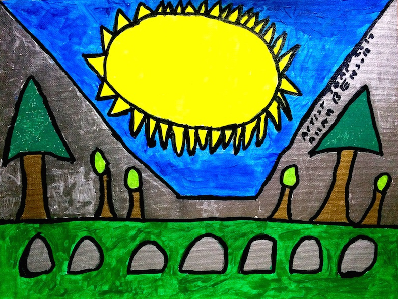 Sun Seen Through the Mountains 9″ x 12″ acrylic on canvas